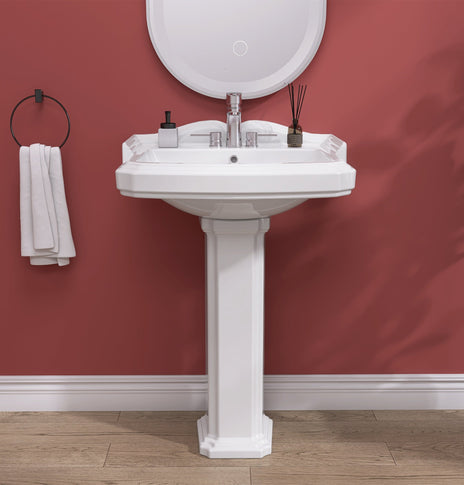 【Easy to Clean Vitreous China Pedestal Sink】The smooth, non-porous surface of vitreous China pedestal sink is easy to clean. Stains and dirt can be wiped away with minimal effort, making it a low-maintenance option...