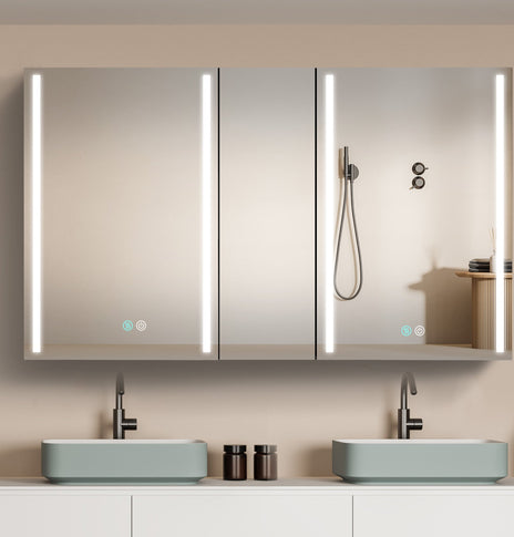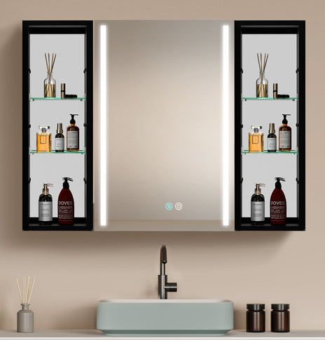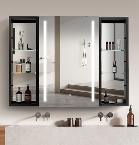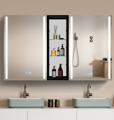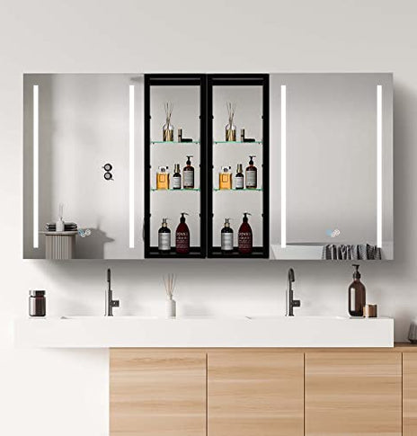 BESTGO medicine cabinets meet your needs. This large 20-inch medicine cabinet with lights comes with 1 pc medicine cabinets. Two main led medicine cabinets can create a big volume of storage in your bathroom, which can meet ladies' stored all kinds of cosmetics. It's very useful and convenient for your daily life. It's a great gift to any lady or man. Both main medicine cabinet with anti-fog function which has mirrors on both sides of the door, interior walls & both side panels, which makes it a bathroom medicine cabinet with mirrors on all sides., and 3 tempered glass shelves with height adjustable.
