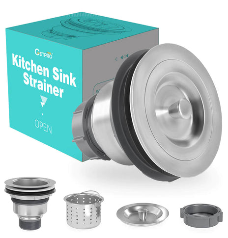 PRODUCT INFORMATION BESTGO kitchen sink drain assembly includes stainless steel sink drain, removable basket and sealing lid. Brushed nickel finish fits well with contemporary kitchen decor. Premium 304 Stainless Steel Construction...