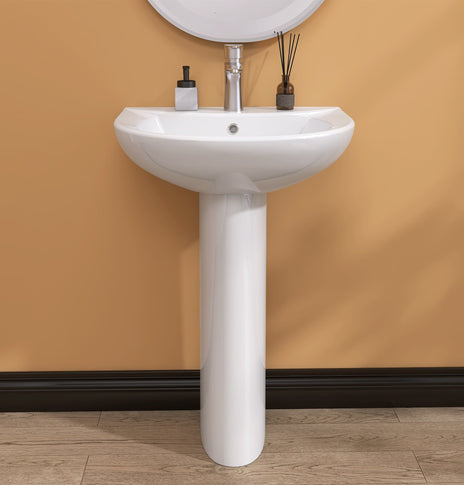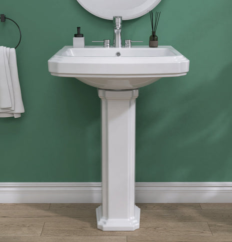 【Stylish Design White Pedestal Sink】This pedestal sinks for bathrooms have a classic and timeless look. This pedestal sink can complement a wide range of bathroom styles from traditional to modern, and their simple elegant design can add a touch of sophistication to any space. The Rectangular white pedestal sink clean lines and geometric shape can complement a variety of bathroom styles.